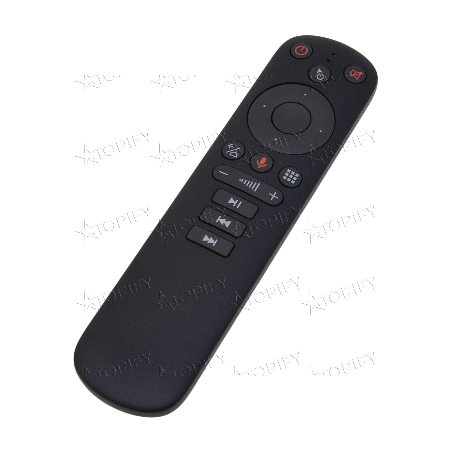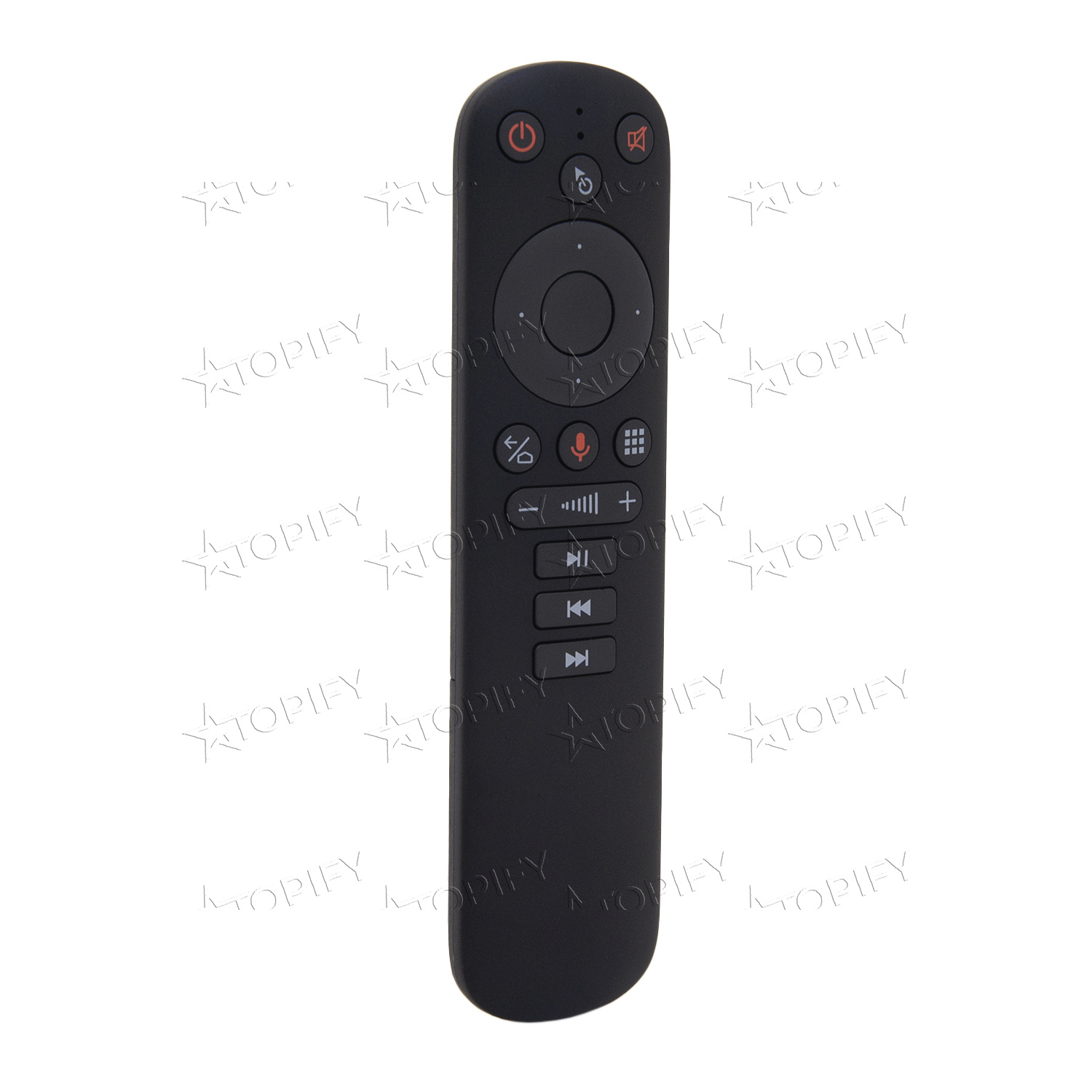 Дистанционный пульт управления с функцией аэромыши. Подходит для большинства современных гаджетов, оснащенных модулями беспроводной связи. Соединение между пультом и девайсом осуществляется на частоте 2,4 ГГц на расстоянии до 10 м. Встроенные гироскопы позволяют управлять курсором, меняя пространственное положение пульта. Предусмотрена поддержка голосового управления. Питается пульт от двух батареек формата ААА.